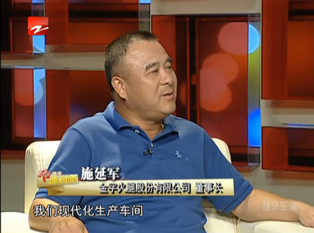 8月23日播出的《風(fēng)云浙商面對(duì)面》收視率迎來(lái)一個(gè)新高,這期節(jié)目邀請(qǐng)到了一位特殊的嘉賓——金字火腿股份有限公司董事長(zhǎng)施延軍。如何將“浙江三寶“之一的金華火腿產(chǎn)業(yè)做到上市,為何能在風(fēng)靡中國(guó)的《舌尖上的中國(guó)》紀(jì)錄片中亮相,怎樣將火腿這一產(chǎn)業(yè)做到與歐洲一樣?施延軍董事長(zhǎng)在節(jié)目進(jìn)行中向觀眾逐一解答,并首次在電視媒體上回顧了金字20多年的發(fā)展歷程。
